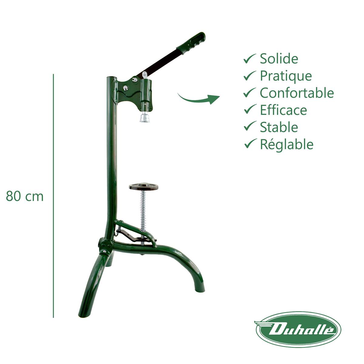 L’effet levier de son manche facilite le capsulage et son trépied offre une bonne stabilité.